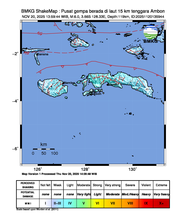 6.0 SR | 119 km | 15 km Tenggara AMBON-MALUKU |